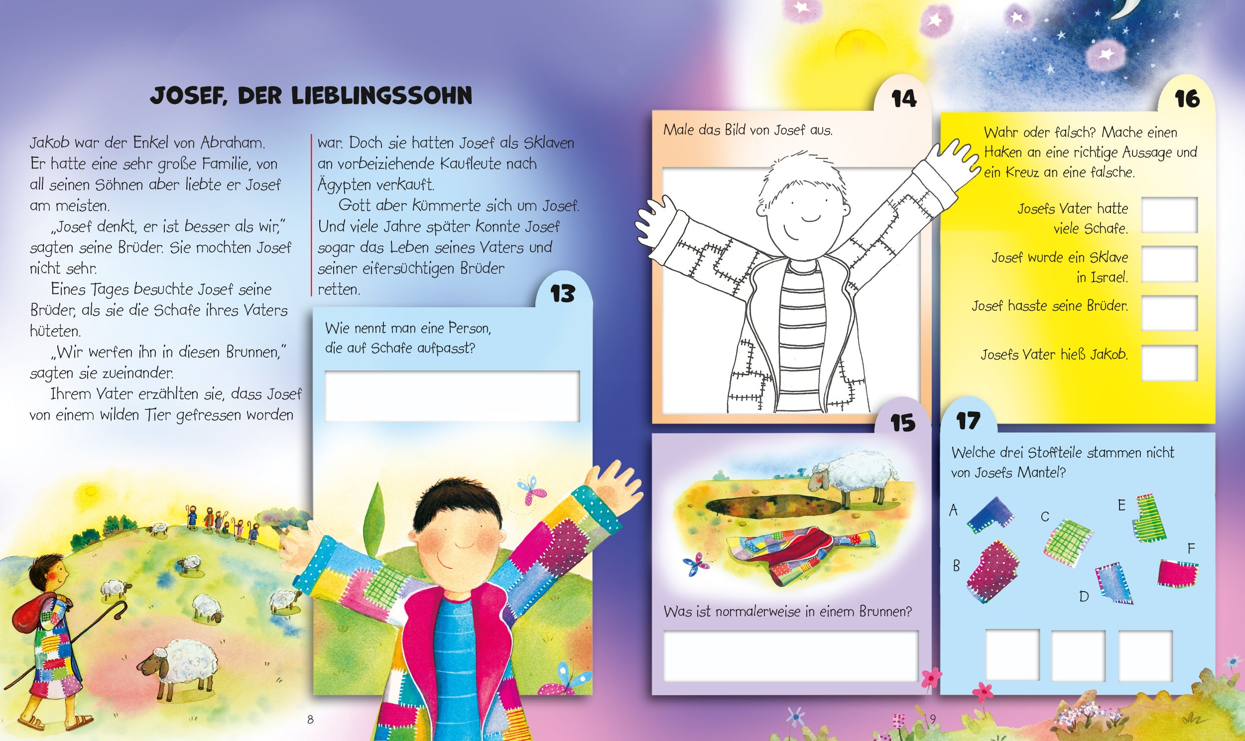 Von der Schöpfungsgeschichte, über den Bericht über die Israeliten bis hin zum Leben von Jesus, erzählt die Autorin anschaulich und einfühlsam die biblischen Geschichten nach. Die elementaren und farbenfrohen Illustrationen unterstützen das schnelle Verständnis der Erzählungen.