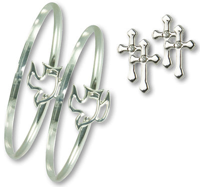 2 Armclips Taube und 2 Ohrstecker-Paare Kreuz