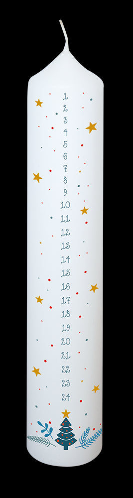 Kerze mit Skala, 24 Tage, Höhe 25 cm, Durchmesser 5 cm, Brenndauer ca. 60 Stunden, verpackt in Folie mit Sisalband
