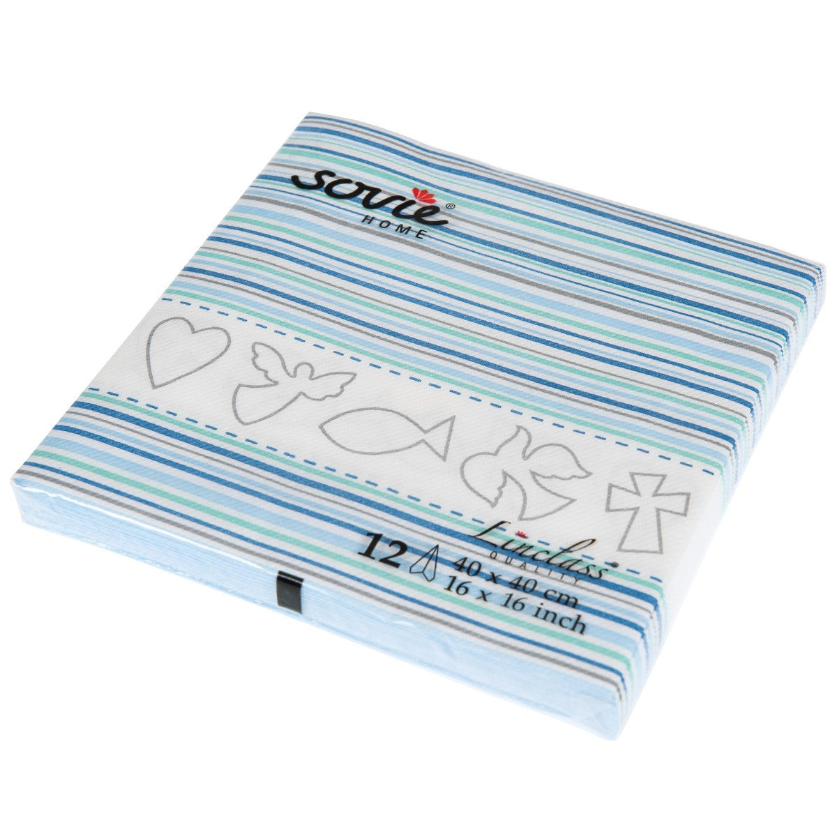 12 Servietten im Streifen-Design mit christlichen Symbolen.