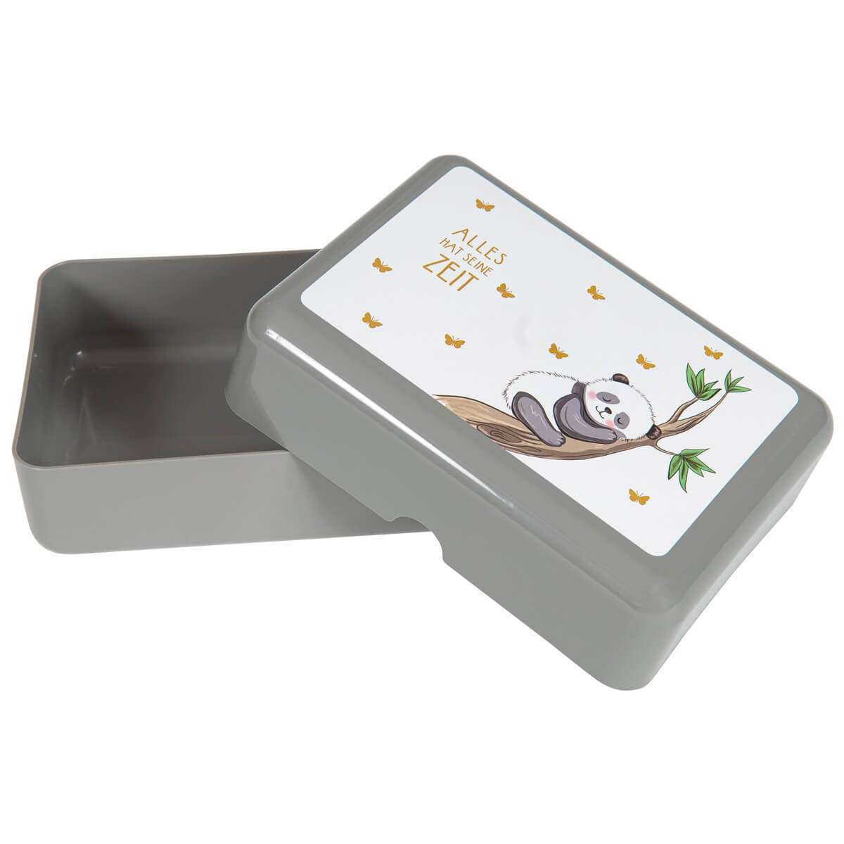 Ein bisschen Retro- Design und voll im Trend: Geräumige Brotdose Panda bestehend aus zwei Schalen, die mittels Elastikband