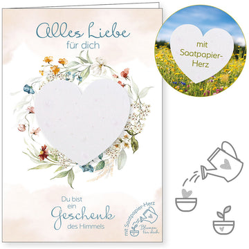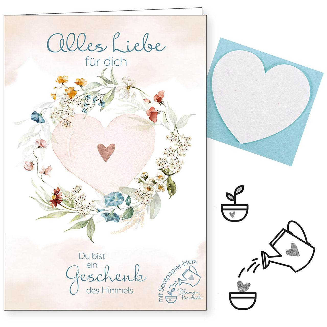 Alles Liebe für dich (Faltkarte mit Saatpapierherz)