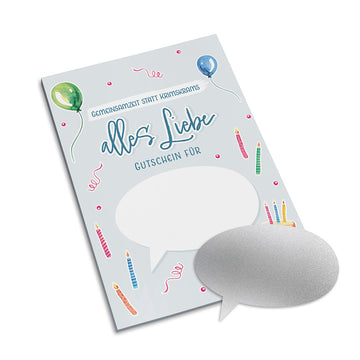 Alles Liebe - Gutscheinkarte mit Rubbeletikett