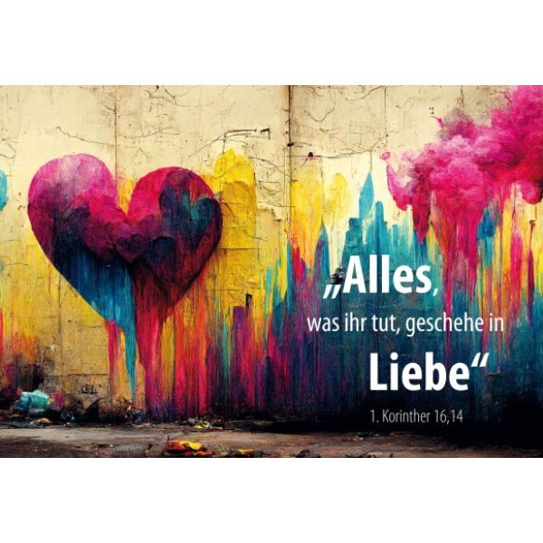 Alles, was ihr tut, geschehe in Liebe - Motiv Buntes Herz (Faltkarte)