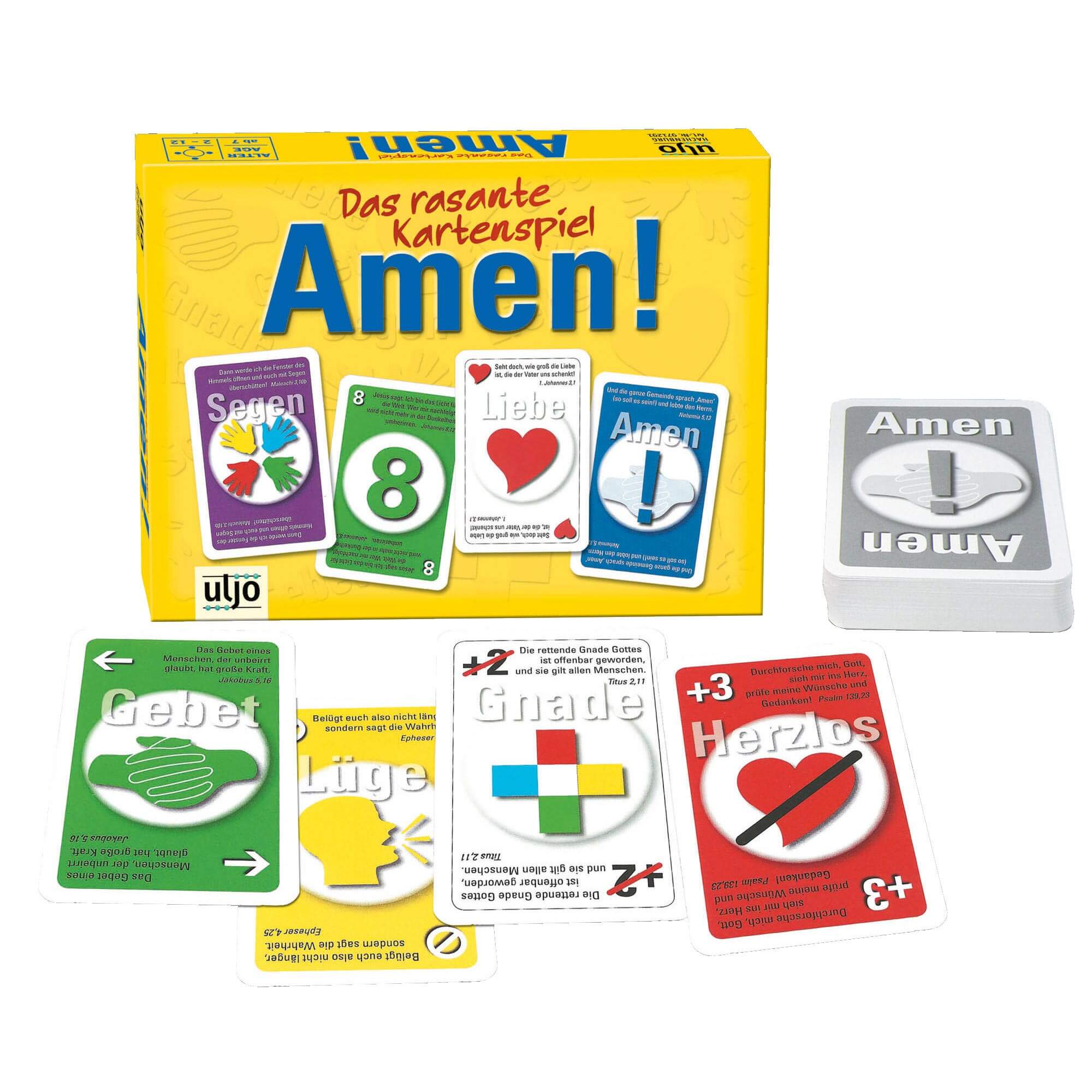 Rasantes Kartenspiel mit 110 Karten für die ganze Familie. Es orientiert sich am erfolgreichen Kartenspiel "Uno", doch alle Karten sind mit christlichen Texten versehen. Ziel ist es, als erster Spieler alle Karten nach Zahl oder Farbe abzulegen. Verschiedene Aktionskarten sorgen im Spielablauf für Spannung und überraschende Wendungen.