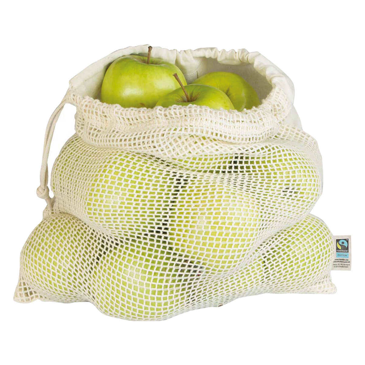 Nachhaltig sein - der Obst- Gemüsebeutel ist die perfekte Alternative zu Plastik- Wegwerfbeuteln für Obst und Gemüse.