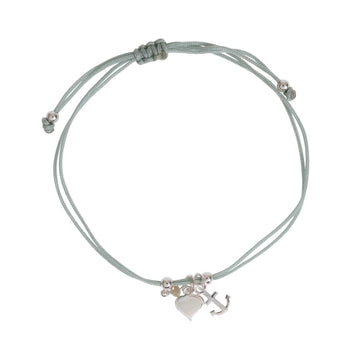 Anker und Herz - Textilarmband mit Anhängern (Sterlingsilber)