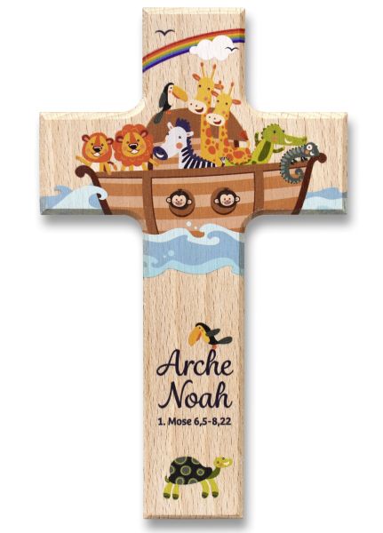 Holzkreuz aus Buchenholz, mehrfarbig bedruckt.