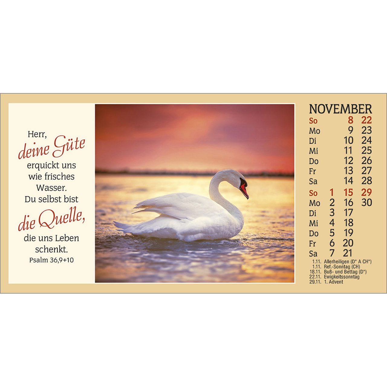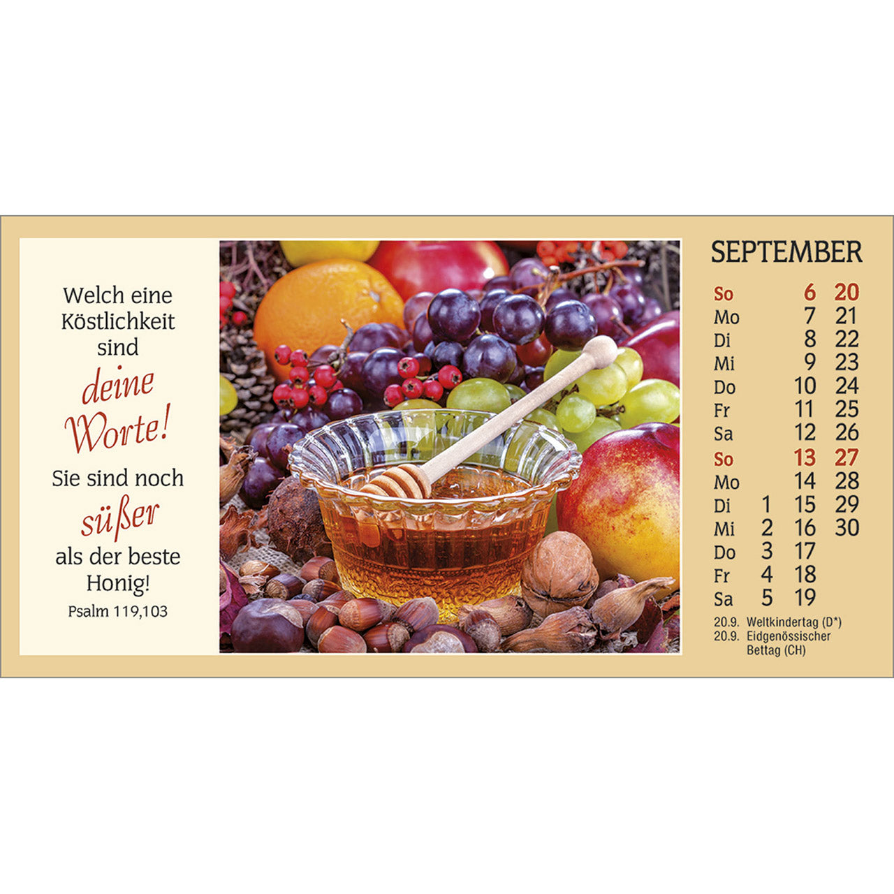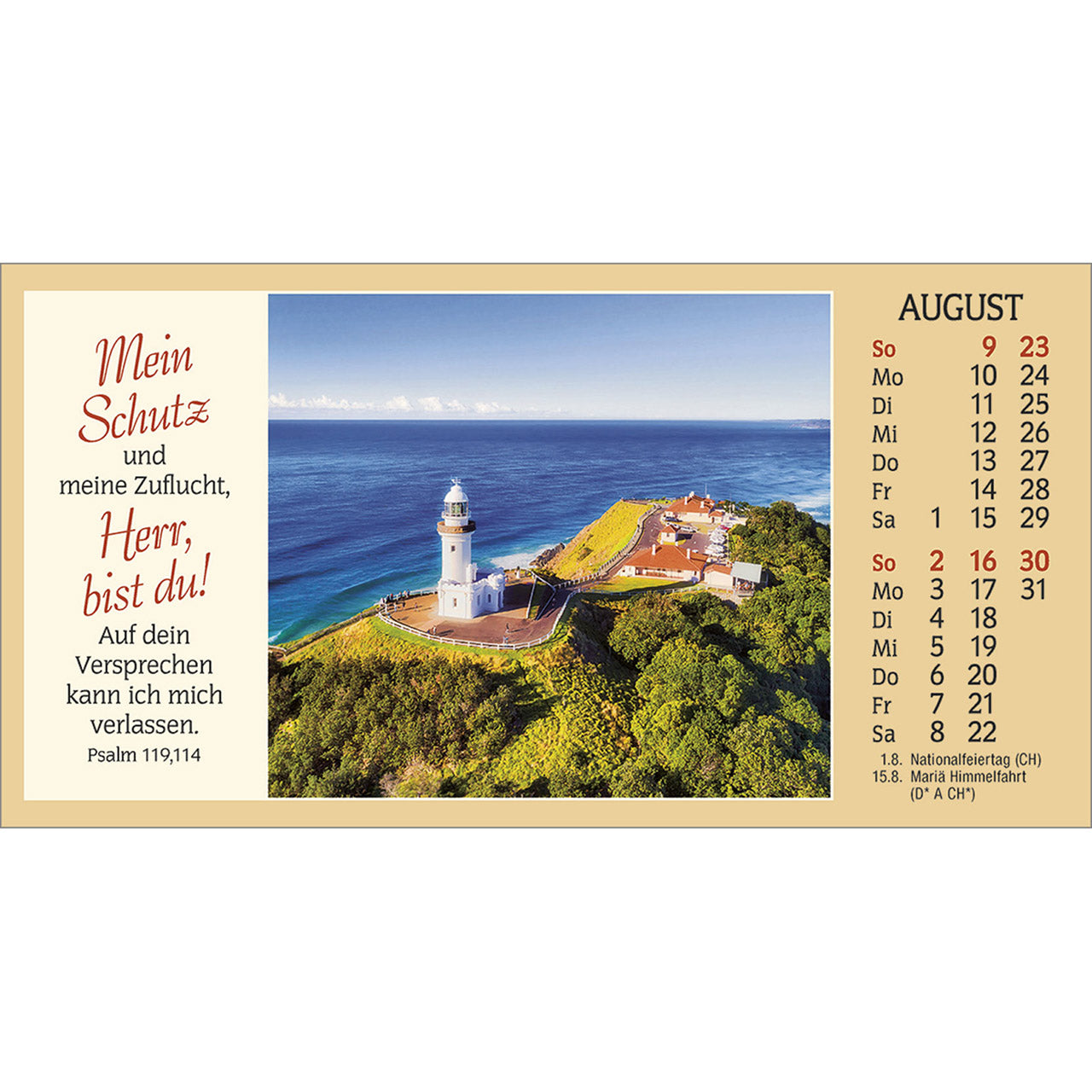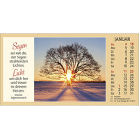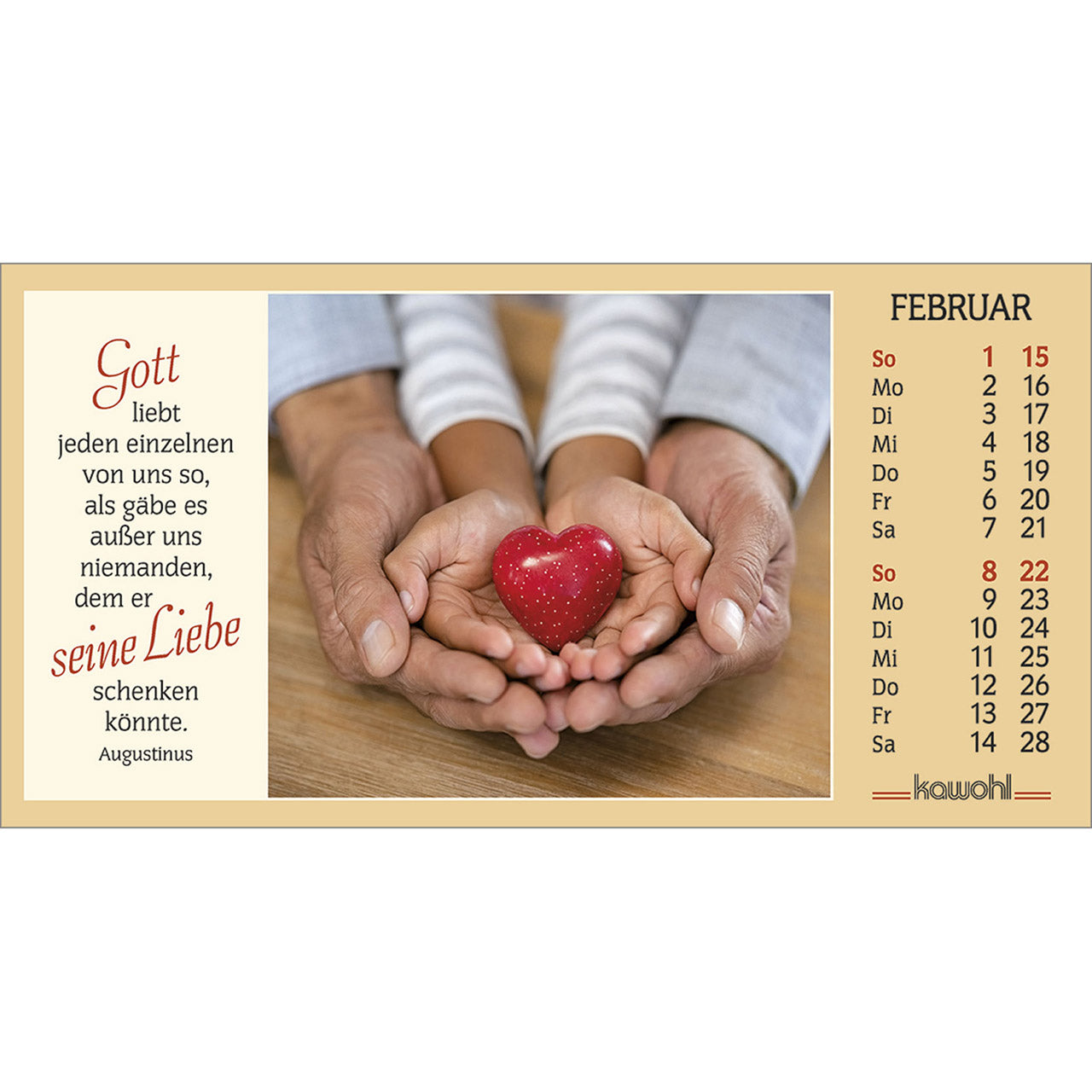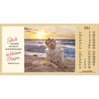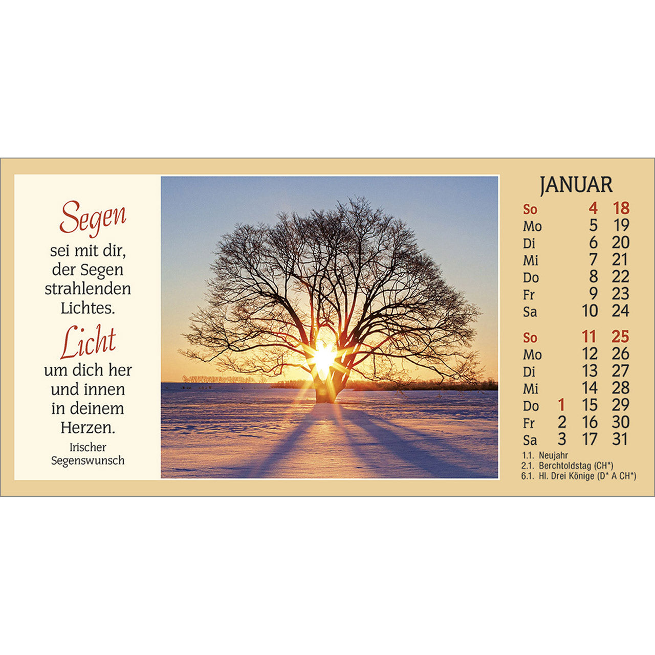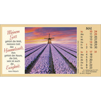 Die Kalenderblätter befinden sich in einer Kunststofftasche, die sich selbstklebend am Armaturenbrett, aber auch an jeder anderen glatten Fläche befestigen lässt.