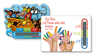 Je nach Wärme des Badewassers ändert sich die Farbe und die Temperatur wird angezeigt. So erkennen Sie ganz leicht die richtige Badetemperatur. Mit dem Saugnapf kann man die Karte sehr leicht am Badewannenrand befestigen. Die schönen Motive werden auch ohne Badewasser zu einer schönen Baddeko.