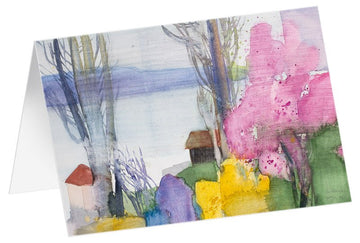 Baumblüte am See - Kunstfaltkarten ohne Text (5er Set)