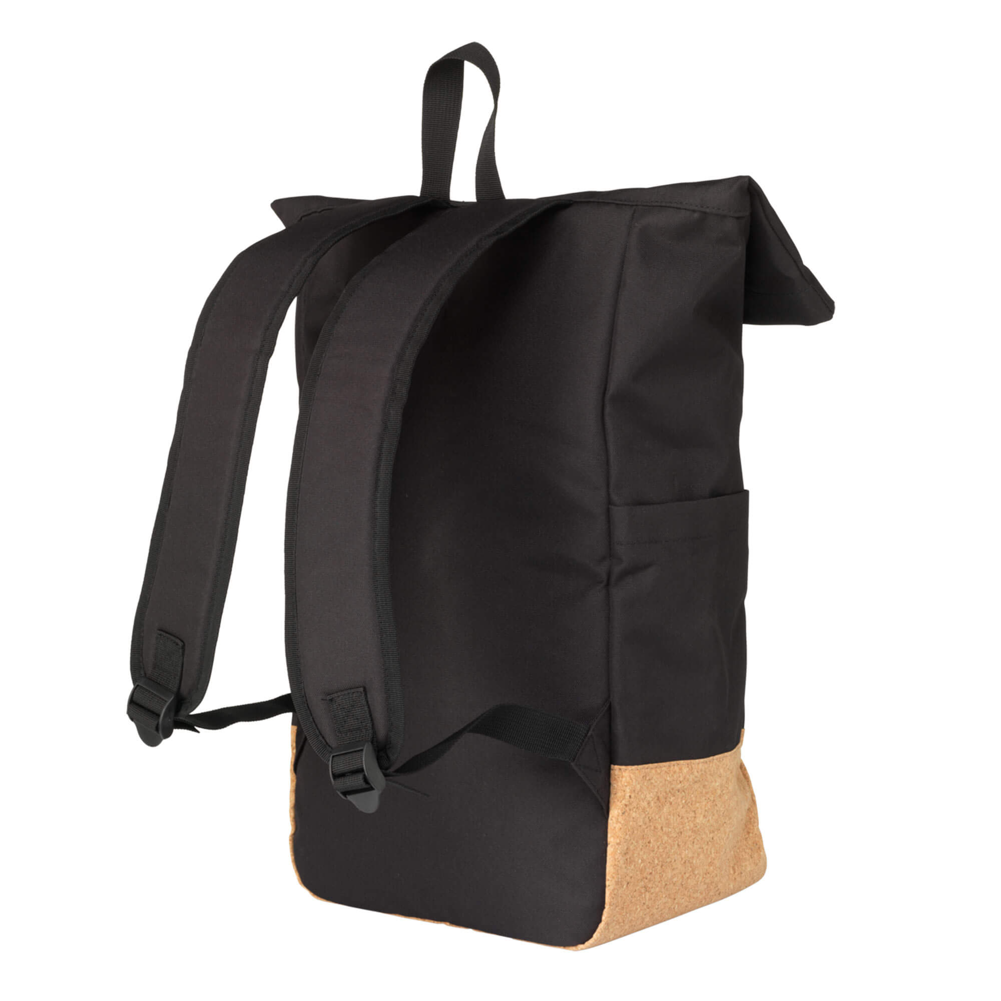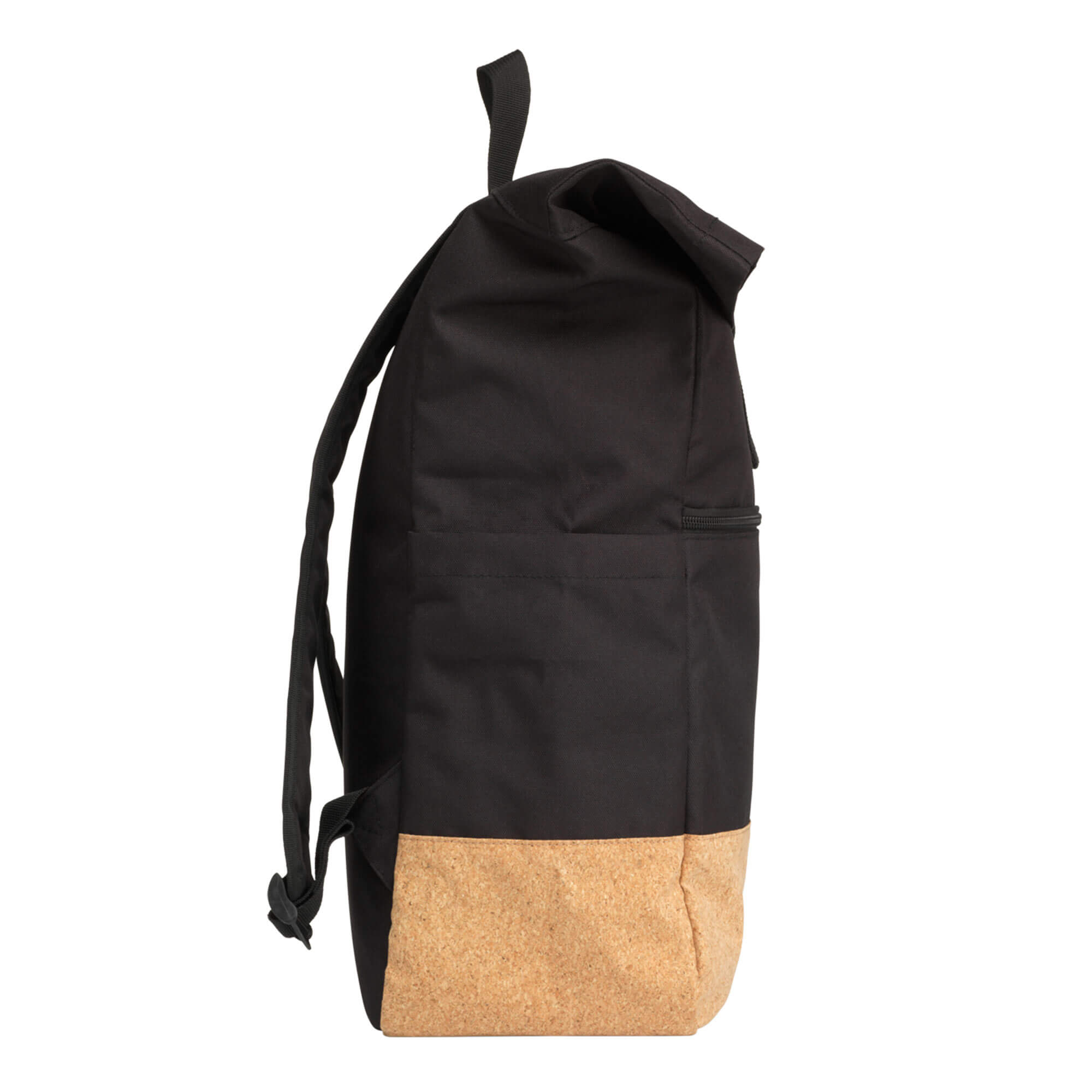 Hergestellt aus recycelten PET-Flaschen, kombiniert mit hochwertigem Kork. Mit großem Laptopfach, für einen Laptop bis 15,6 Zoll, dazu je ein Einsteckfach an beiden Seiten und ein großes Reißverschlussfach an der Vorderseite.