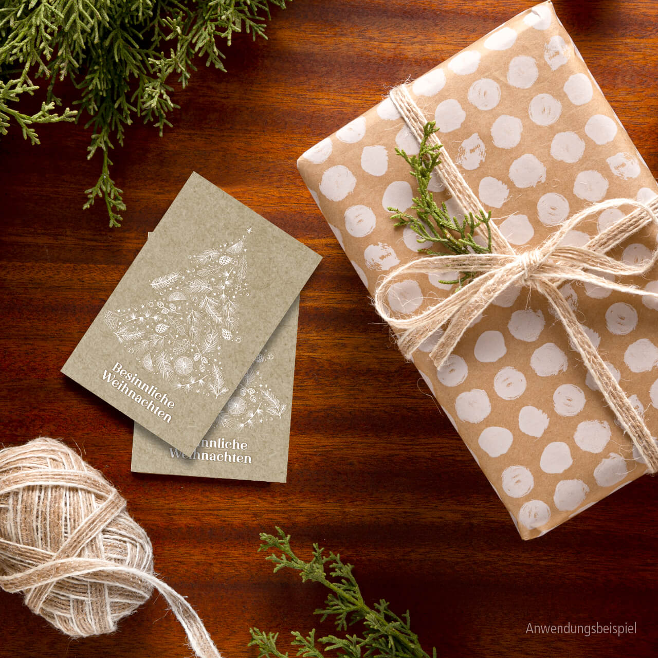 Die schönen Weihnachtskärtchen mit Weihnachtsmotiv "Besinnliche Weihnachten" sind ideal, um Geschenke für die Liebsten zu schmücken. Dazu infach lochen und mit einem hübschen Band ans Päckchen binden.