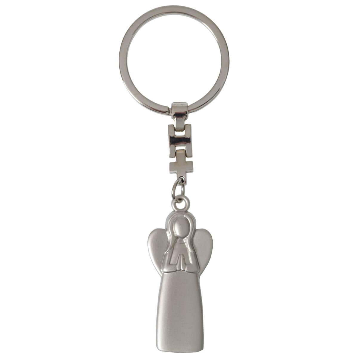 Hochwertiger Schlüsselanhänger "Betender Engel" aus matt poliertem Metall.