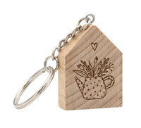 Ein Schmuckstück für Schlüssel oder Tasche sind diese Anhänger aus Buchenholz mit hochwertiger Gravur und Metallkette mit Schlüsselring. Mit 2,8 x 3,8 x 1 cm sind sie klein und zierlich und tragen am Schlüssel nicht zu dick auf.