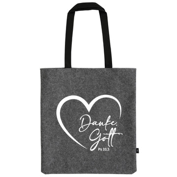 Robuster Shopper aus dunkelgrauem RPET-Qualitätsfilz, hergestellt aus recycelten PET-Flaschen.