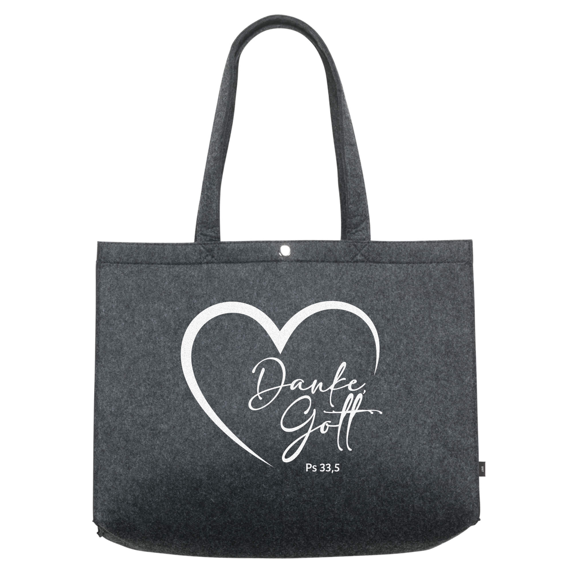 Geräumige Einkaufstasche aus RPET-Filz, hergestellt aus recycelten PET-Flaschen.