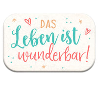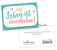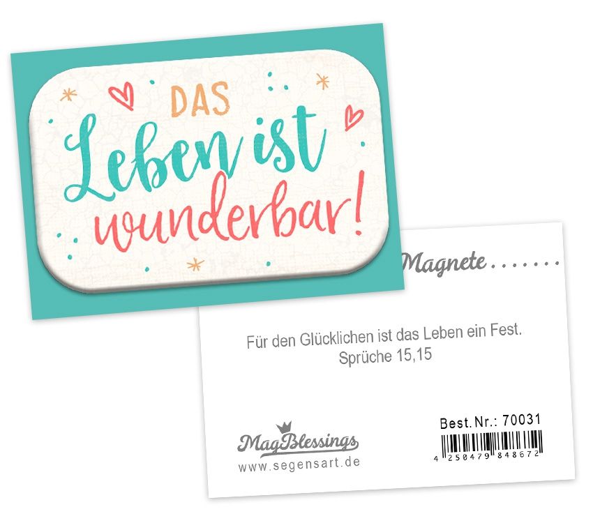Der Magnet und ein farbiges Kärtchen mit Bibelzitat auf der Rückseite sind zusammen in einer Folie verpackt.