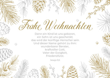 Denn ein Kind ist uns geboren, ein Sohn ist uns geschenkt; das wird der künftige Herrscher sein. Und dieser Name gehört zu ihm: wunderbarer Berater, kraftvoller Gott, Vater der Ewigkeit, Friedensfürst.