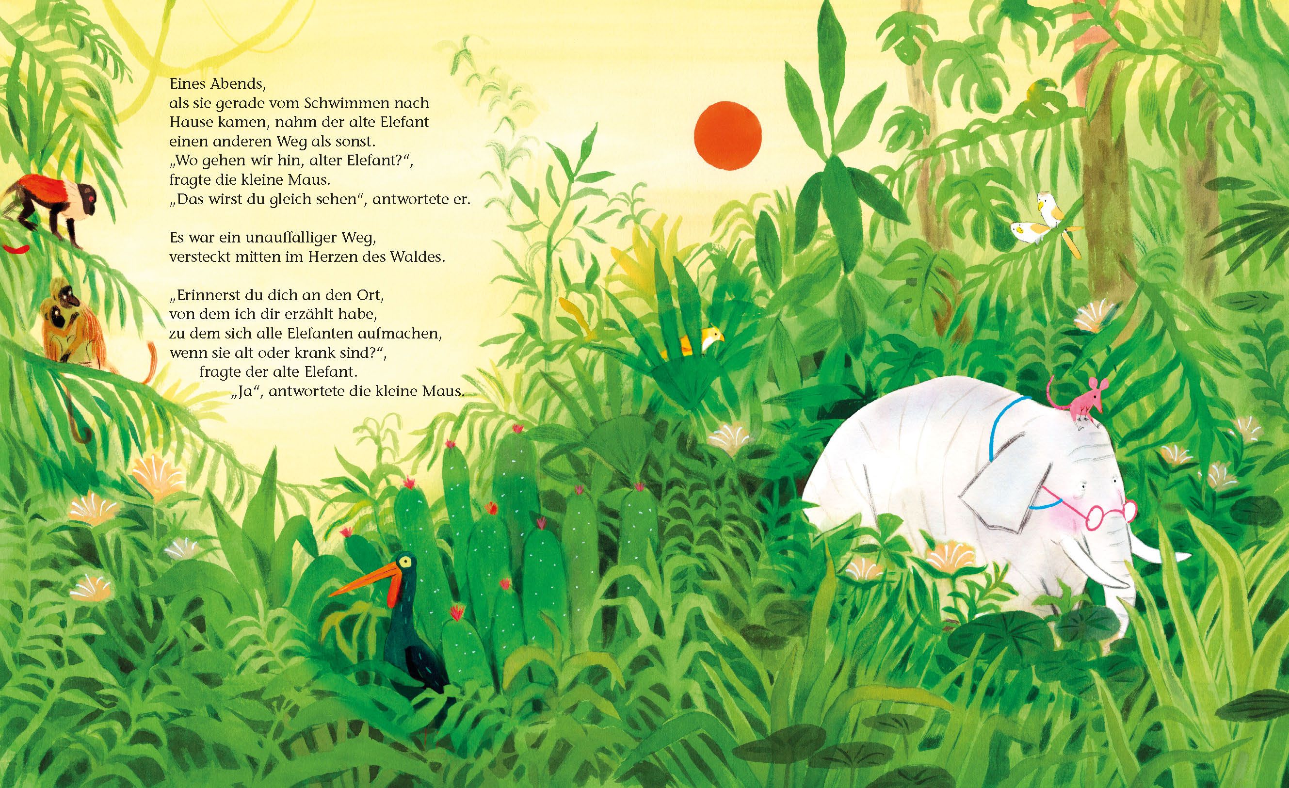 Der alte Elefant und die junge Maus sind dicke Freunde. Doch als der alte Elefant sich auf die Reise ins himmlische Reich der Elefanten vorbereitet, muss die kleine Maus lernen, ihn gehen zu lassen. Eine sensible und zugleich humorvolle Geschichte über Freundschaft, Tod und Loslassen-Können.