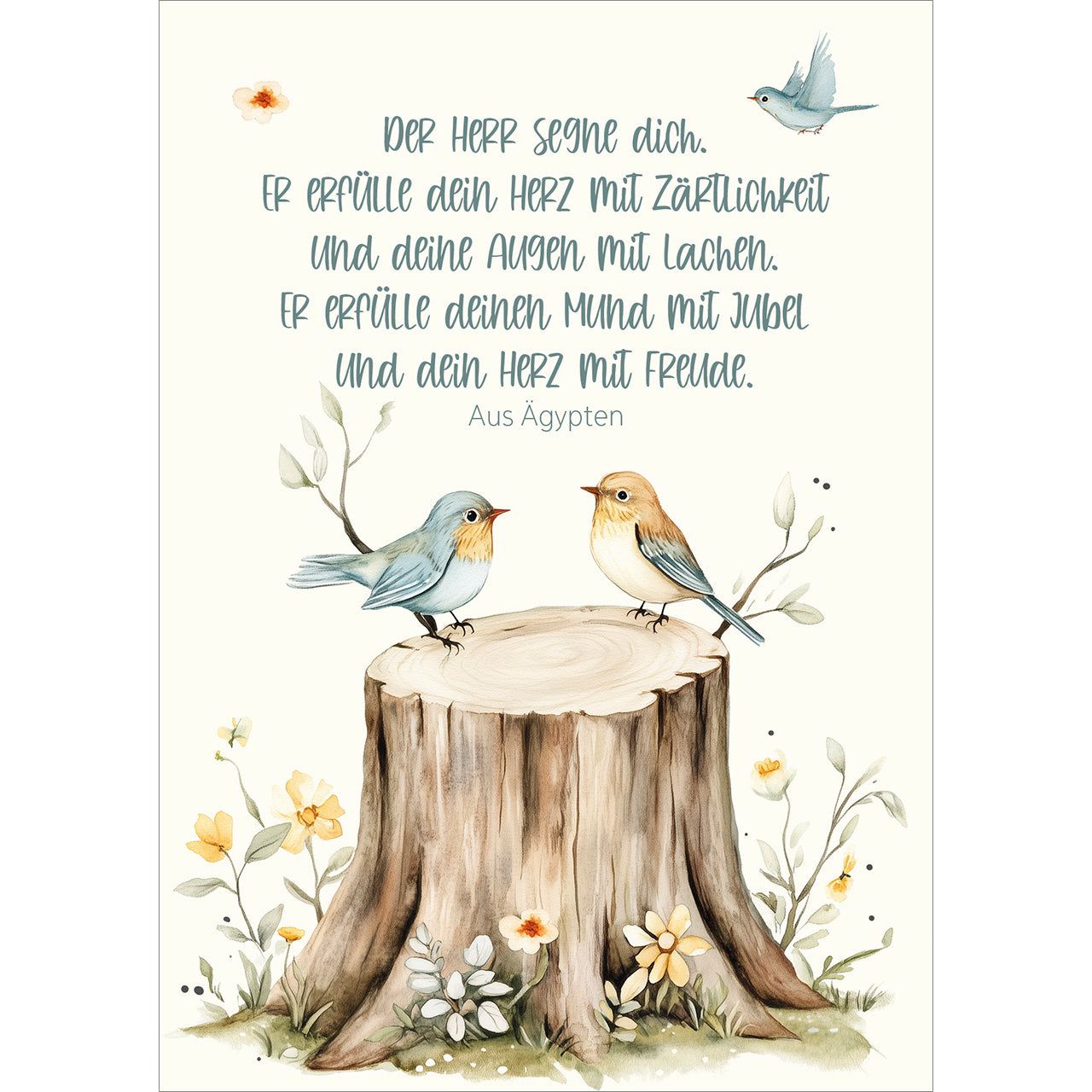 Der Herr segne dich. Er erfülle dein Herz mit Zärtlichkeit und deine Augen mit Lachen. Er erfülle deinen Mund mit Jubel und dein Herz mit Freude.