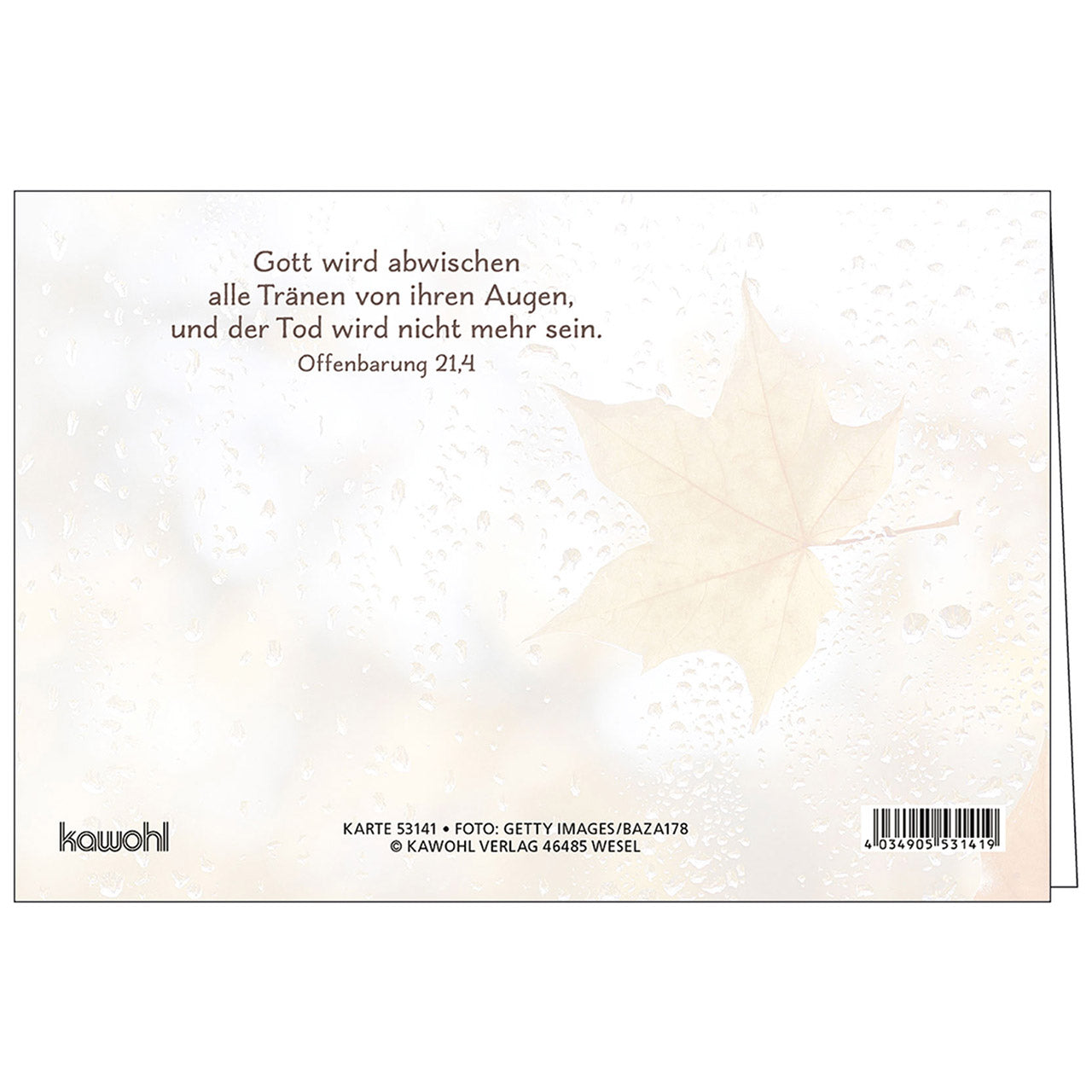 Behutsame und liebevolle Anteilnahme hilft durch die Zeit des Abschiednehmens. Mit dieser Karte zeigen Sie dem Trauernden, dass Sie mitfühlen und an ihn denken. Die sorgsam ausgewählte christliche Botschaft spendet Kraft und Hoffnung.