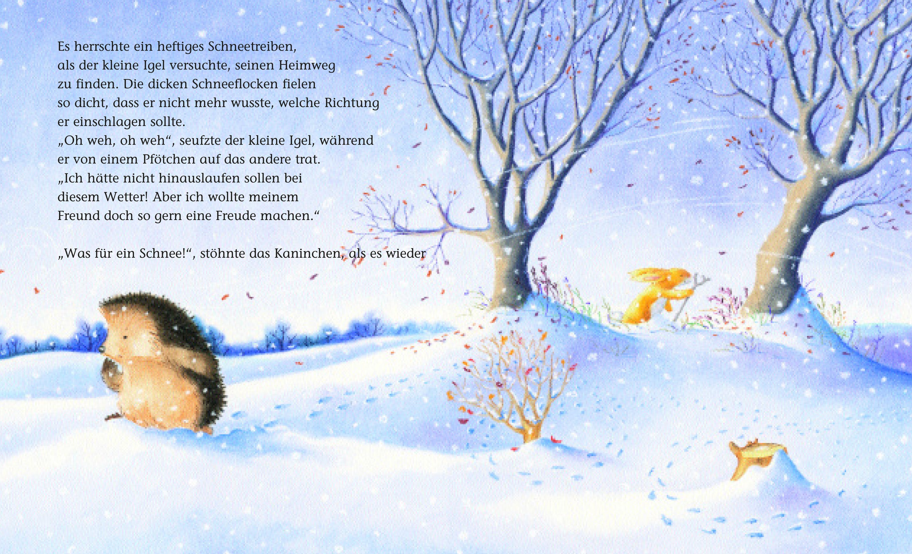 Der kleine Igel wird von einem eiskalten Sturm aus dem Winterschlaf geweckt. Nun friert er so sehr, dass er nicht wieder einschlafen kann. Plötzlich fällt ihm ein Päckchen vor die Pfoten. "Für den kleinen Igel" steht darauf - und eine kuschelig weiche, rote Pudelmütze steckt darin. Der kleine Igel probiert sie sofort auf, aber die Mütze will einfach nicht über seine Stacheln passen. Was nun? Der kleine Igel hat eine großartige Idee ... Und am Ende wird die rote Pudelmütze zum allerwichtigsten Geschenk.
