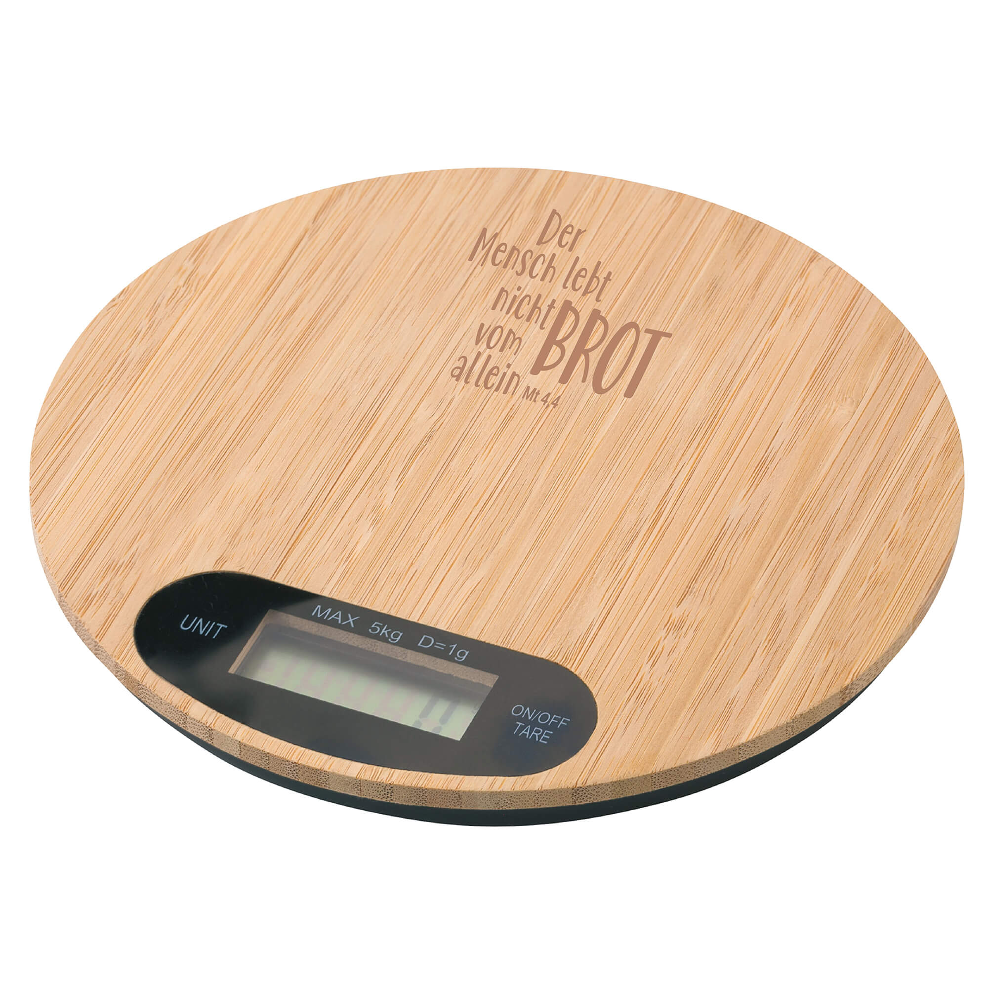 Der Mensch lebt nicht vom Brot allein - Küchenwaage (Bambus)