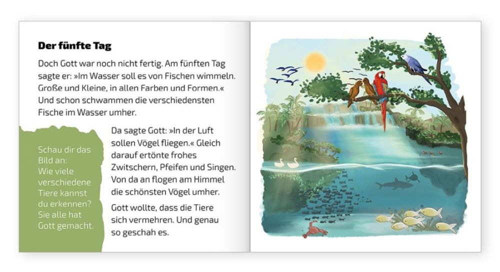Die biblische Schöpfungs-Geschichte, für Kinder bebildert und nacherzählt.