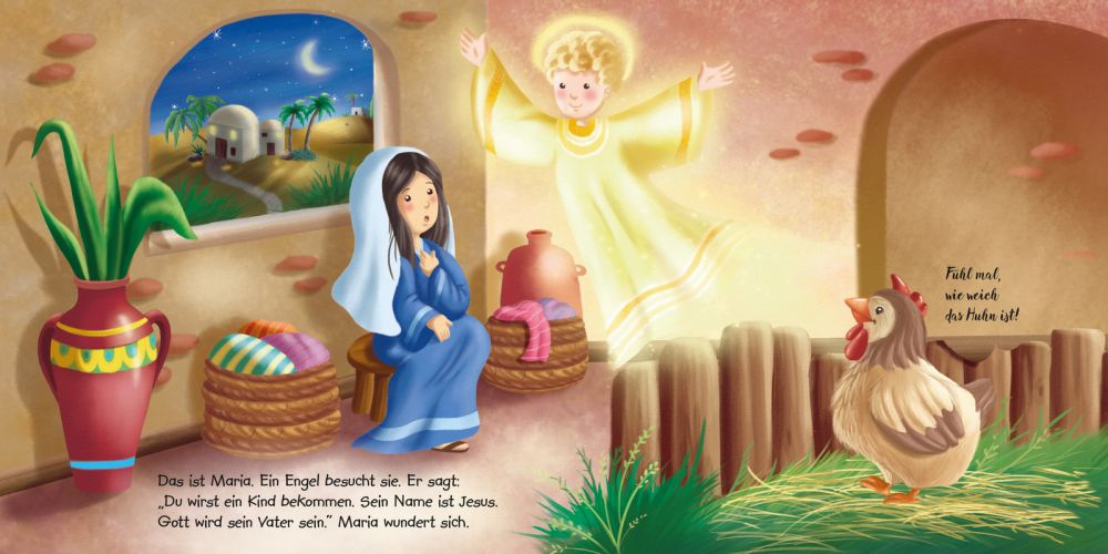 In dieser Weihnachtsgeschichte können Kinder fühlen, wie flauschig das Fell des Schäfchens ist, das mit den Hirten zur Krippe geht! Und der Weg, auf dem die drei Weisen reiten, ist ganz rau. - Wenn Kinder das Weihnachtsgeschehen auf fühlende Weise begreifen können, wird die Geschichte von der Geburt Jesu ganz lebendig. Sie begleiten Maria und Josef, die Hirten und die Weisen. Am Ende wird klar: An Weihnachten feiern wir, dass Jesus geboren wurde, weil Gott uns liebt.