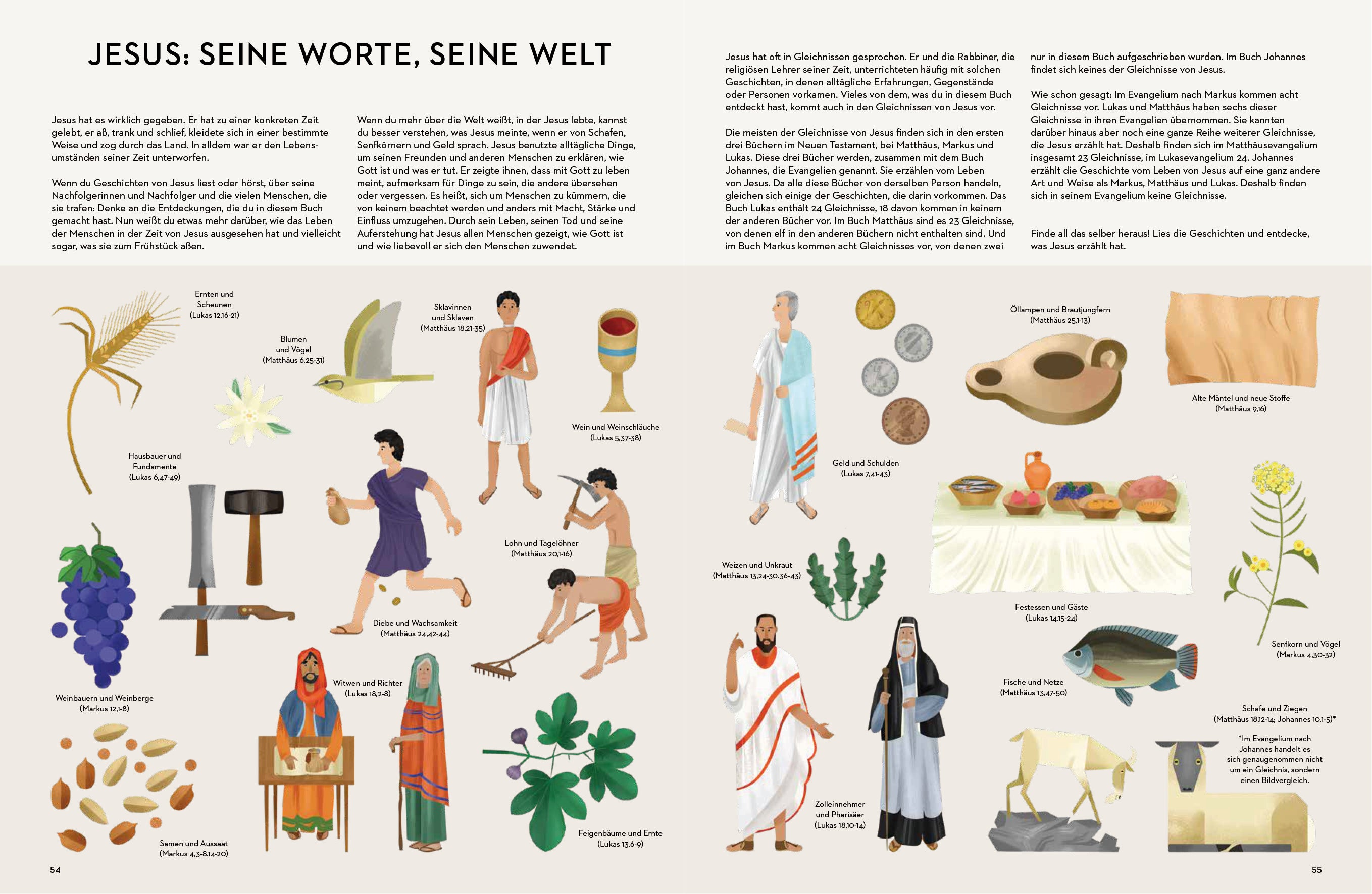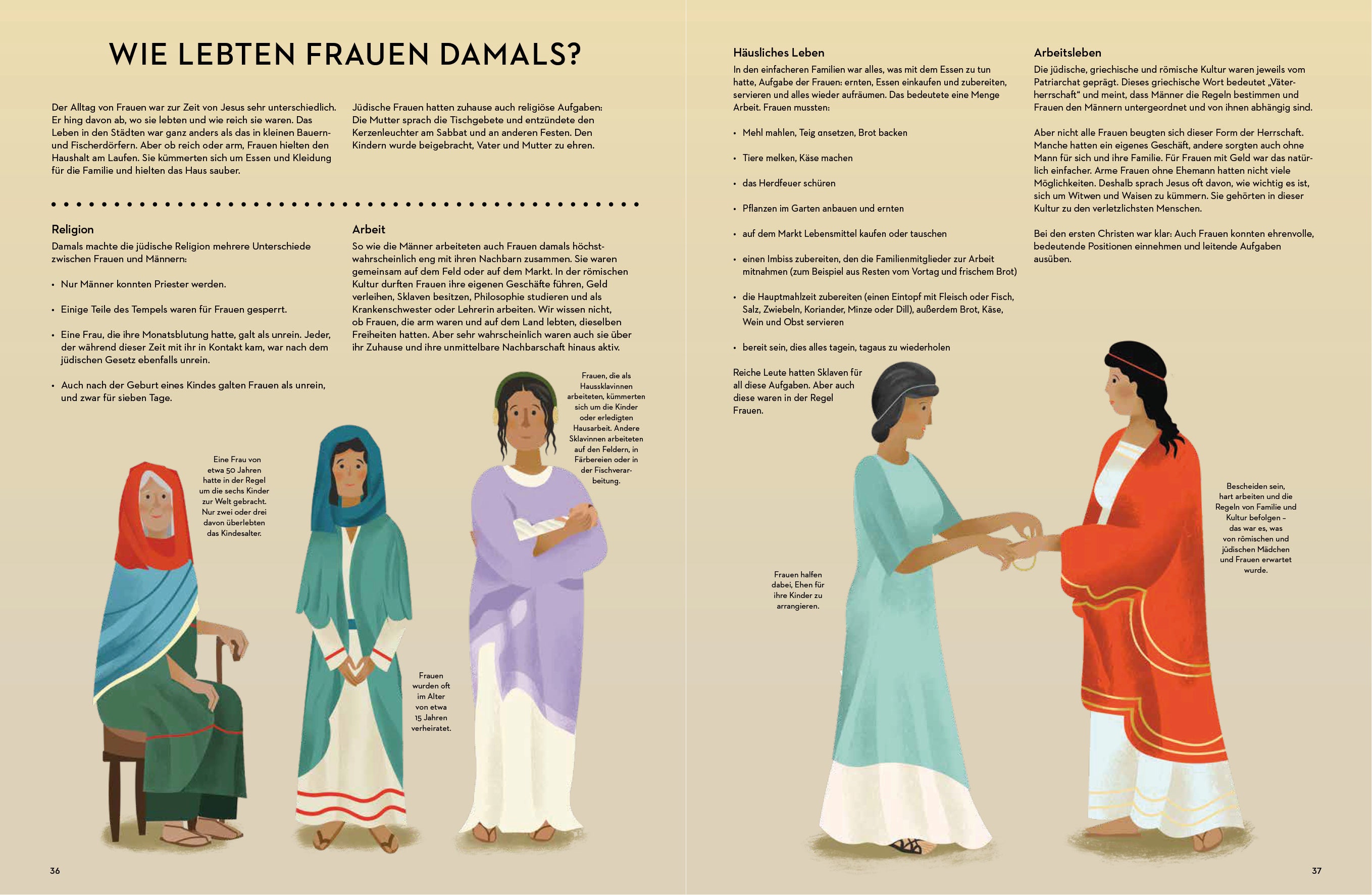 Dieses Bildersachbuch für Kinder beschreibt die Welt vor 2000 Jahren mit vielen Erläuterungen und zahlreichen Illustrationen. Jesus lebte in einer Welt, die ganz anders war als unsere. Wer diese Welt kennenlernt, wird viele Geschichten und Gleichnisse viel besser verstehen. Mit diesem sachkundigen und abwechslungsreichen Buch gelingt das hervorragend. In 24 Kapiteln informiert der Autor über die Gegebenheiten der Zeit Jesu. Der Arbeitstag, das Leben der Frauen, Heilmittel, der jüdische Kalender und vieles mehr werden kindgerecht geschildert.