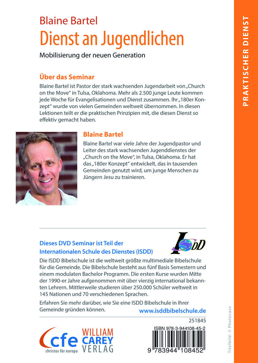 Blaine Bartel ist Pastor der stark wachsenden Jugendarbeit von ?Church on the Move? in Tulsa, Oklahoma. Mehr als 2.500 junge Leute kommen jede Woche für Evangelisationen und Dienst zusammen. Ihr "180er Konzept" wurde von vielen Gemeinden weltweit übernommen. In diesen Lektionen teilt er die praktischen Prinzipien mit, die diesen Dienst so effektiv gemacht haben.