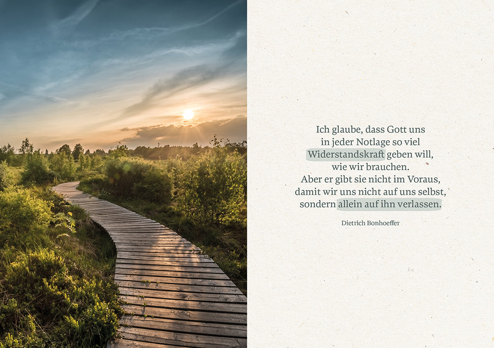 Das neue Heft in der Reihe "Kleine Grüße", herausgegeben von Susanne Baum, mit dem Titel "Du bist bei mir" enthält einfühlsame und tröstliche Texte, die von einer Hoffnung sprechen, die durch Krankheit oder schwierige persönliche Umstände trägt. Sie wollen den Lebensmut stärken und Proviant und Nahrung für Seele und Geist sein. Sie laden ein abzugeben, sodass das Herz leichter wird. Die Texte stammen von Manfred Siebald, Dietrich Bonhoeffer, Martin Luther, Alfred Delp und anderen.