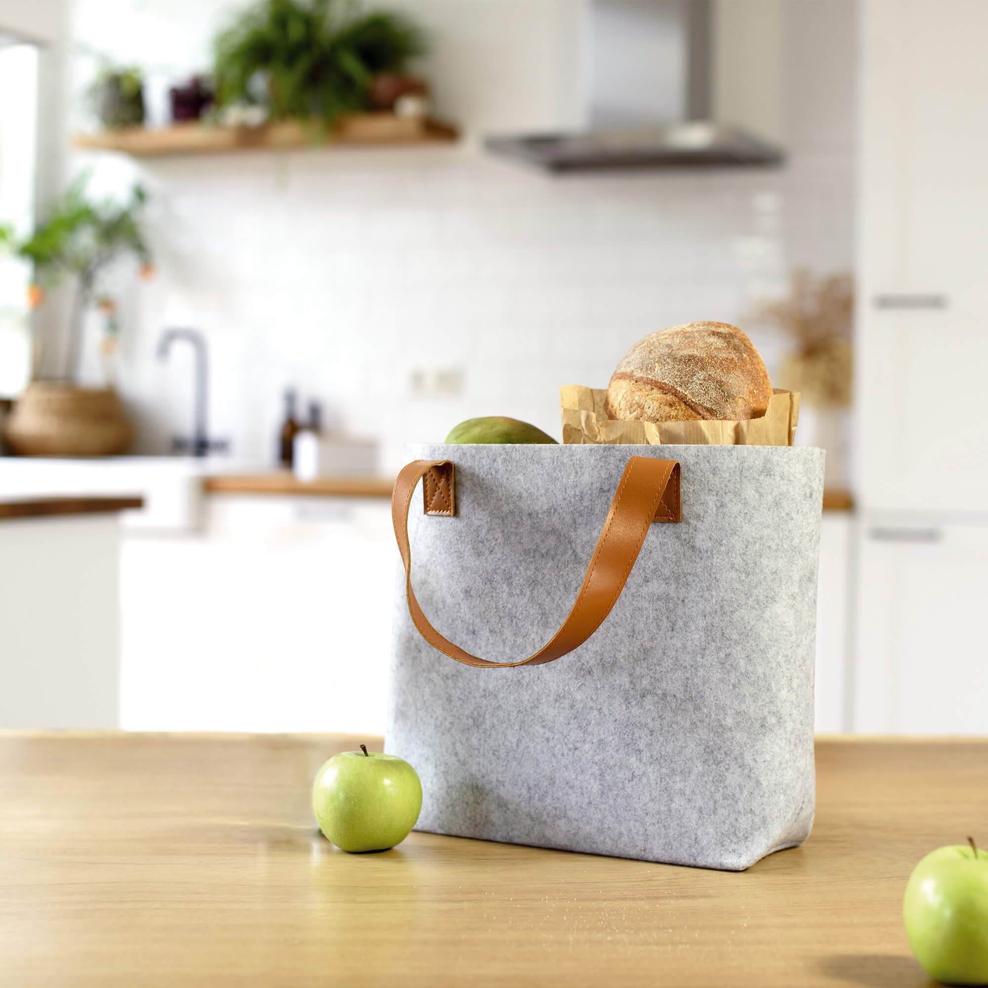 Die strapazierfähige Einkaufstasche aus recyceltem rPET-Filz ist perfekt geeignet für Besorgungen, Shoppingausflüge, Picknicks oder einfach für unterwegs.