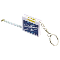 Schlüsselanhänger mit Schlüsselring an einer Edelstahlkette, mit Maßband (1 m Länge) und Mini-Wasserwaage.