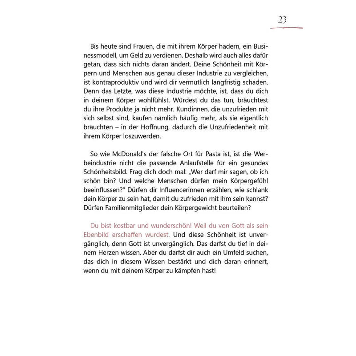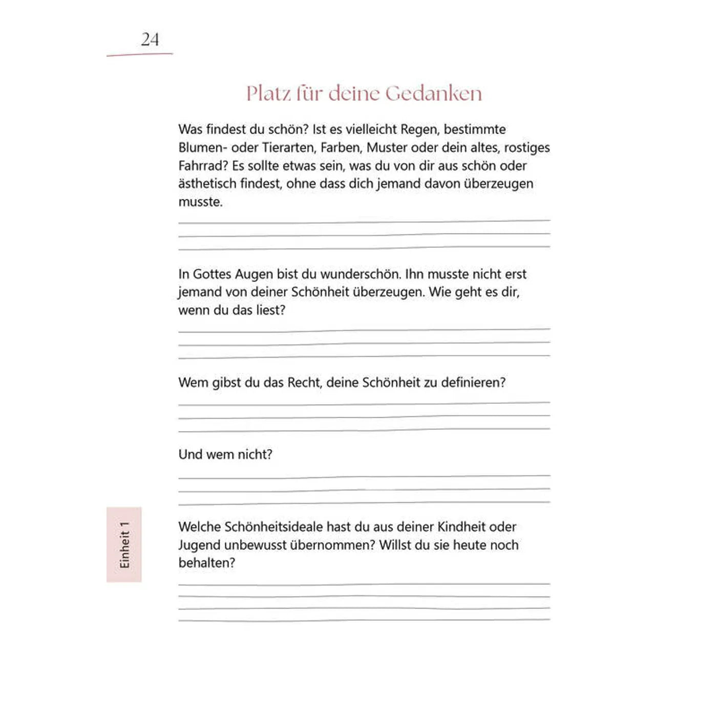 Mit Fragen, Denkanstößen und viel Platz für deine eigenen Gedanken wirst du eingeladen, dich selbst besser kennenzulernen, zu reflektieren und deine Identität in Gottes Liebe zu entdecken. Dieses Buch ist dein Mutmachbuch, um dich selbst zu feiern und zu erkennen: Du bist kostbar, du bist geliebt, du bist genug!