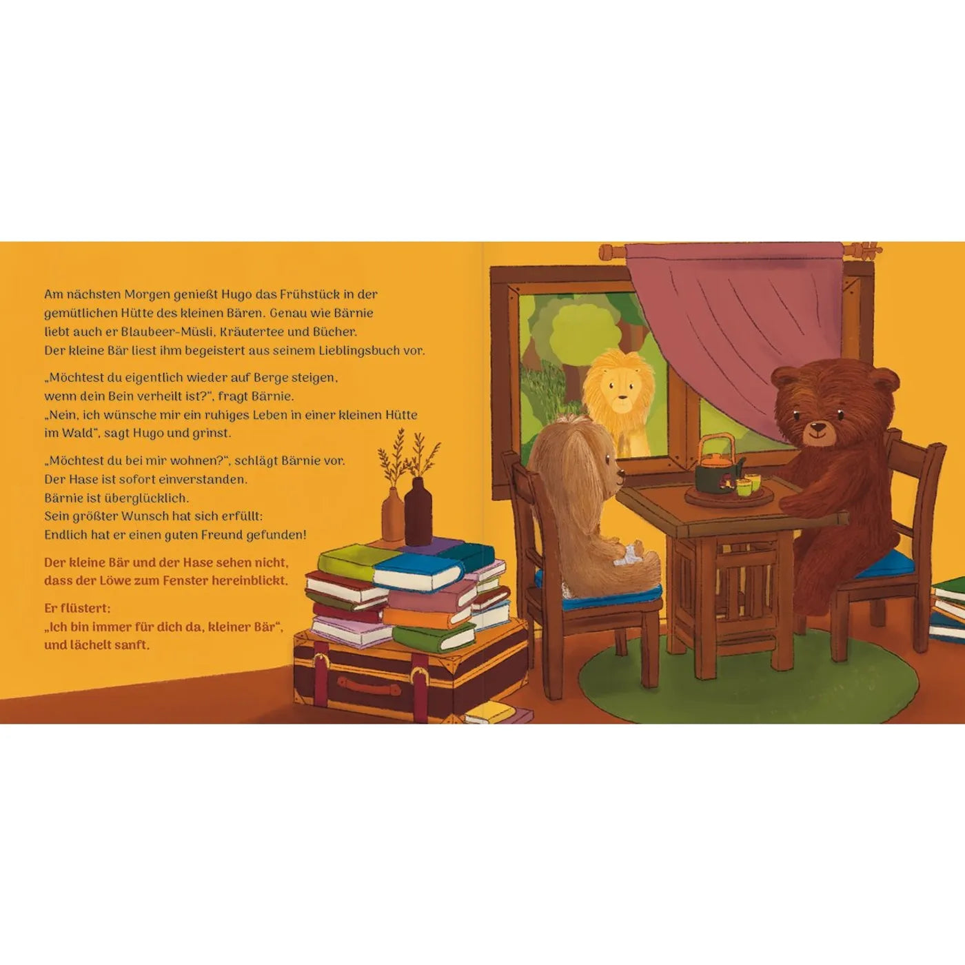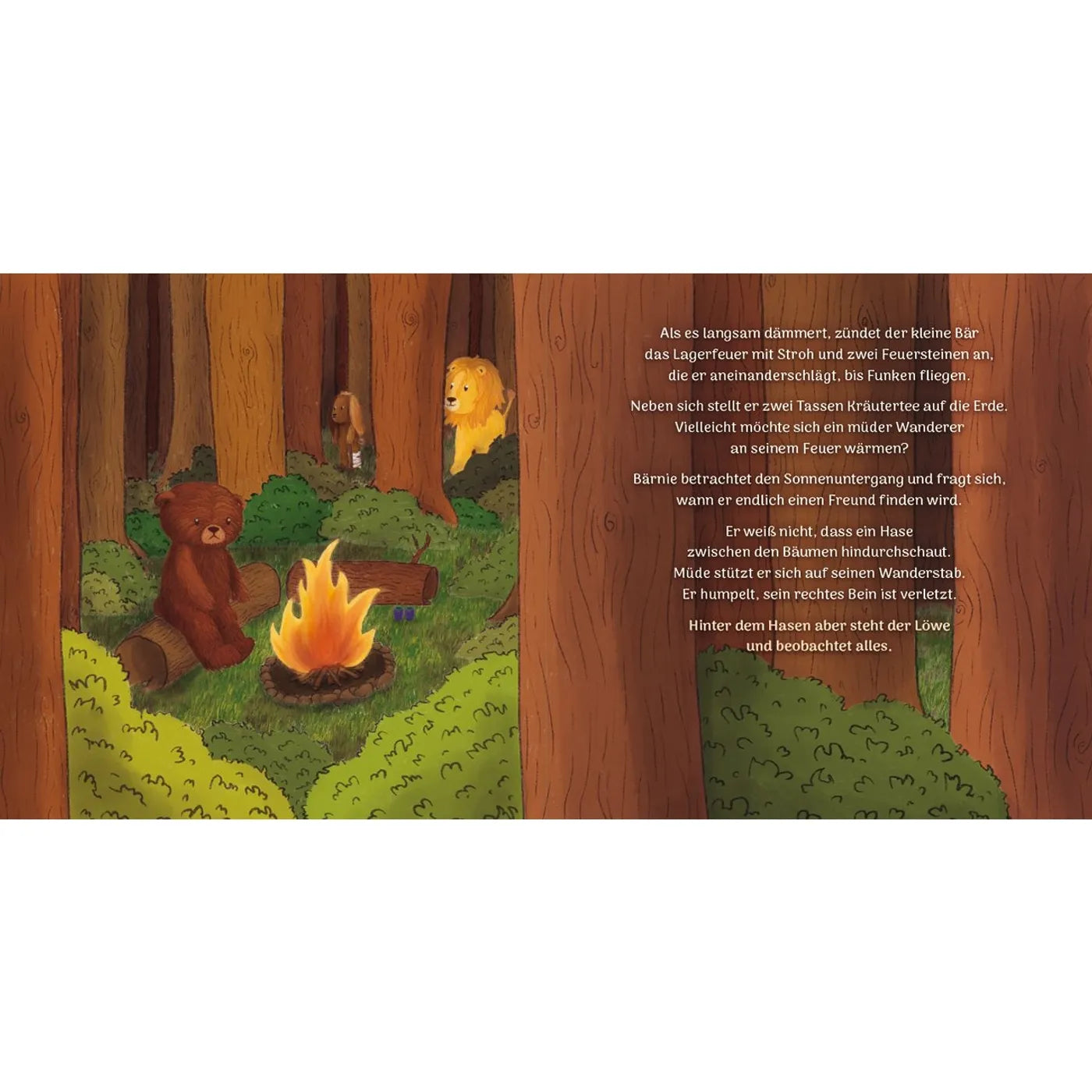 Bärnie Bär lebt einsam im großen Wald. Nichts wünscht er sich mehr als einen Freund. Doch die anderen Tiere fürchten sich vor ihm. Dass ihn jemand liebevoll im Auge behält und heimlich hilft, merkt der traurige Bär gar nicht. Vielleicht ist er gar nicht so allein, wie er denkt.