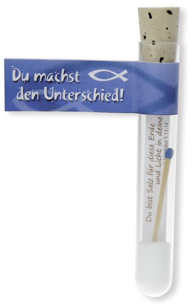 Du bist Salz für diese Erde und Licht... (Röhrchen mit Salz und Zündholz)