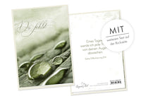Faltkarte mit farbigem Umschlag und Hülle, im Format 14,8 x 10,5 cm (Format inkl. Umschlag 16 x 11,5 cm)