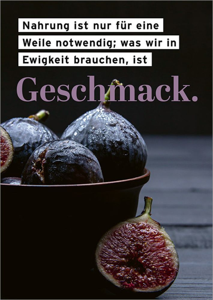 Die schönsten Perlen seiner Impulse aus dem Buch Das große Festmahl haben wir mit ästhetischer und moderner Food-Fotografie zusammengebracht. Die 9 Motive sind je 2x enthalten und kulinarische Liebeserklärungen an die Schöpfung und den Schöpfer und machen Appetit auf mehr.