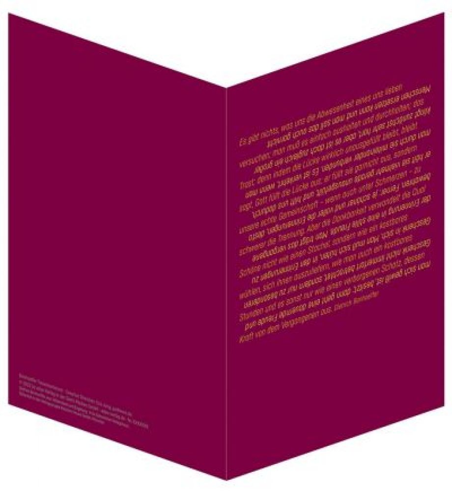 Sprachfähig in Sprachlosigkeit - Eva Jung bietet in dieser Kartonmappe zehn neue Trauermotive abseits des üblichen Angebots.
