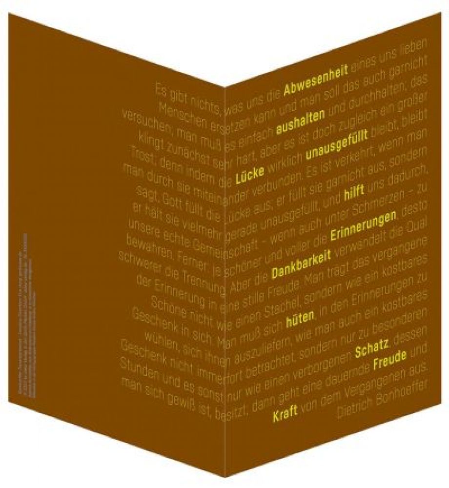 Nach "Weint mit den Weinenden" (Bestellnr. 5572948) inszenieren nun zehn Faltkarten ein bewegendes Zitat Dietrich Bonhoeffers.
