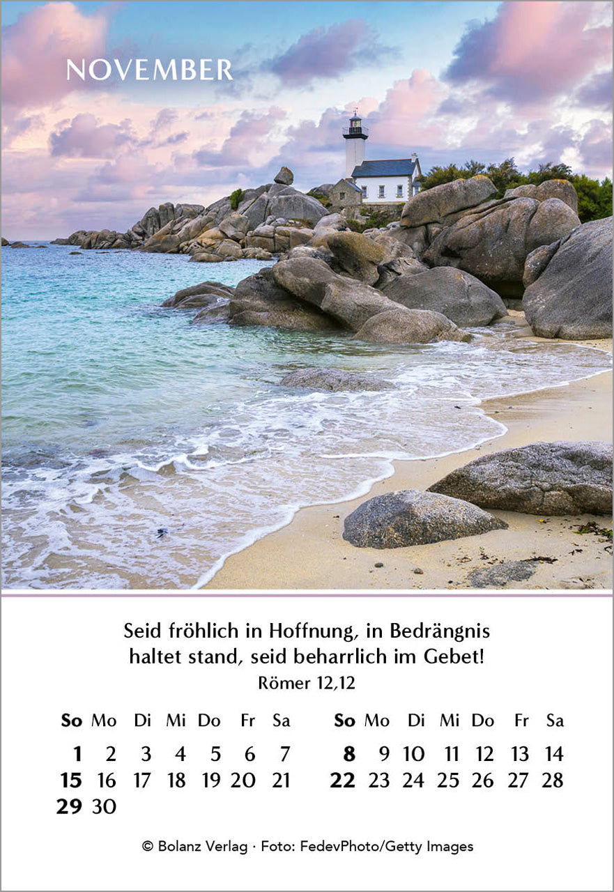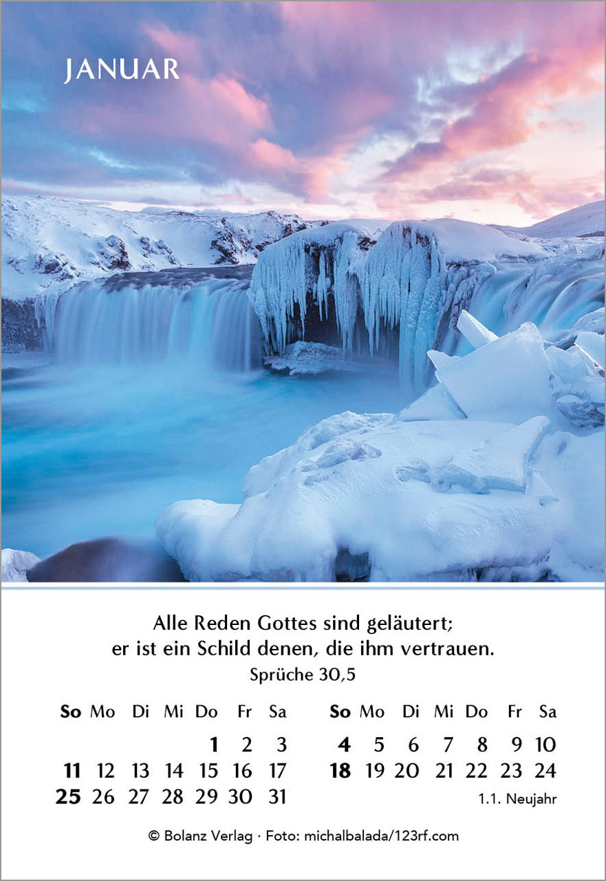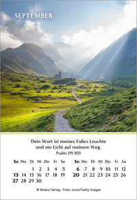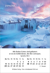 Minikalender mit stabiler Heftbindung und Dreiecksaufsteller zum Zusammenstecken. Mit passenden Bibelversen. Gedruckt auf Kunstdruckpapier - zum Superpreis.
