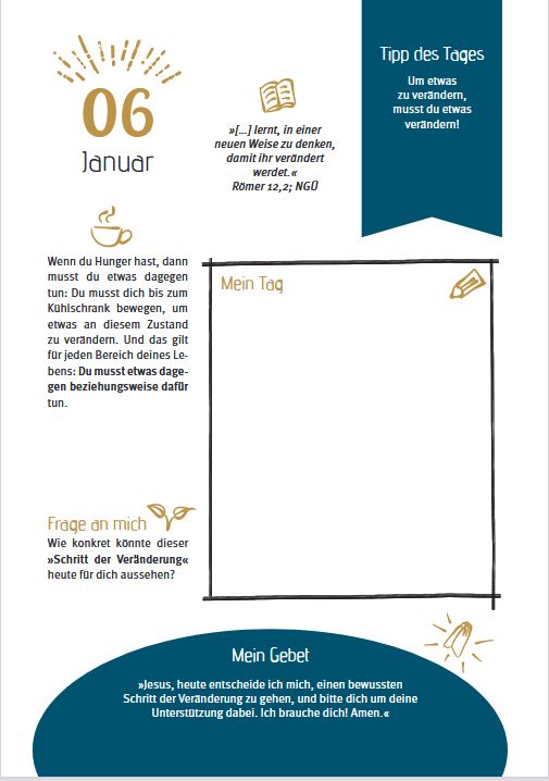 Dieser Jahresplaner begleitet dich durch deinen Alltag und bei deinem Glauben, damit du immer wieder erlebst: Er macht mein Leben WUNDER-voll!