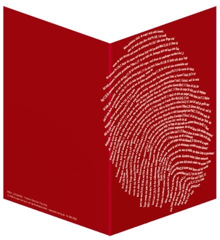 Hochwertige Doppelkarten ohne Text im Innenteil. Der Fingerabdruck auf dem Cover der roten Karte ist eine Liebeserklärung Gottes an uns - zusammengesetzt aus lauter Bibelversen.