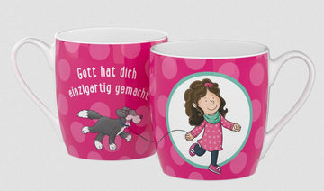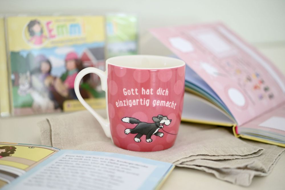Die Geschenkidee für alle Emmi-Fans: Hier kommt die Gute-Laune-Tasse! Sie ist eine schöne Erinnerung daran, dass Jesus - genau wie bei Emmi - auch mit uns allen durch den Tag geht. Mit der Alltags-Ermutigung "Gott hat dich einzigartig gemacht".