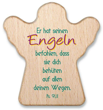 aus Buchenholz, 5,5x5,5 cm, Textaufdruck: "Er hat seinen Engeln befohlen, dass sie dich behüten auf allen deinen Wegen."