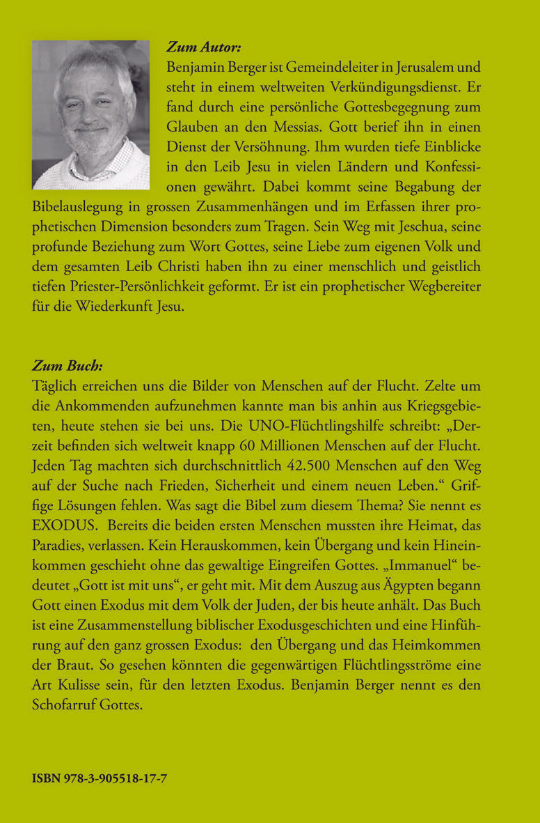 Wenn im alten Israel an den Hohen Feiertagen das Schofar erschallte, ging es den Menschen durch Mark und Bein. Sie wussten: "Jetzt spricht Gott zu uns, wir müssen hören!" Ähnlich dem gewaltigen Aufbruch aus Ägypten wird der Auszug der Brautgemeinde Jesus beim letzten Exodus sein. Die Botschaft dieses Buchs wirkt wie der Schall des Schofars das uns einlädt zuzuhören und aufzubrechen. Der Bräutigam Jeschua wird seine Braut hineinführen in die gewaltige Einheit um die er in Johannes 17 gebetet hat. Die Zeit dafür ist nahe.