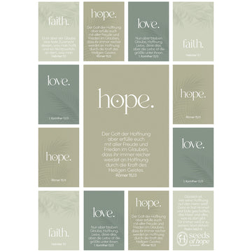 Modern gestaltete Aufkleber-Karte mit biblischen Zusagen - ästhetisch, hoffnungsvoll und glaubensstärkend