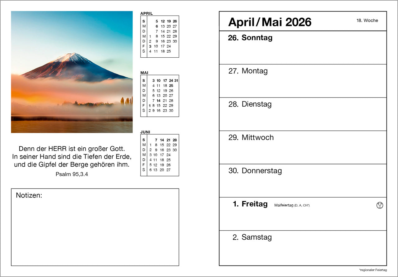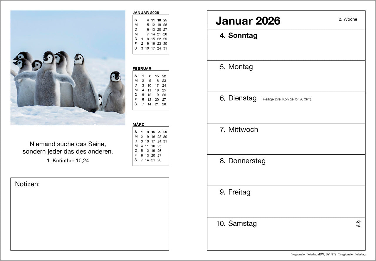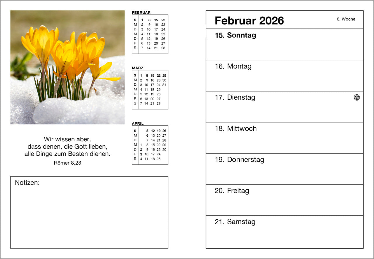 Taschenterminer mit praktischer Spiralbindung, farbigem Umschlag und schützendem Plastikeinband.